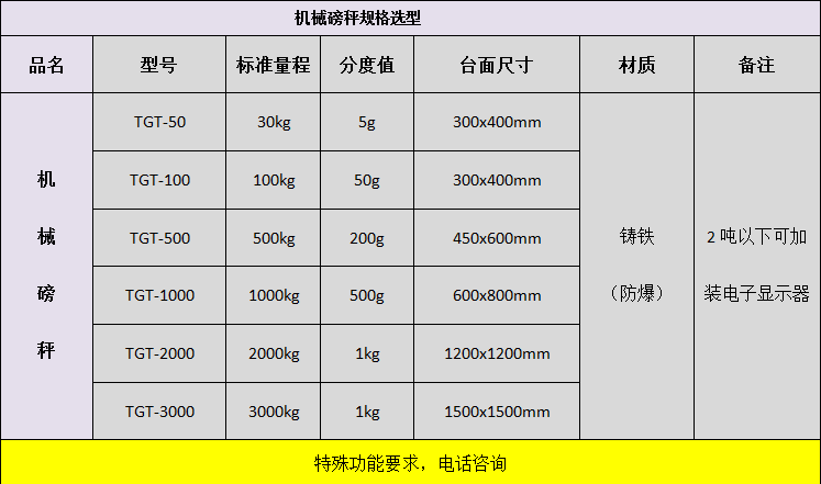 TGT老式機械磅秤?,由秤架,杠桿傳力機構,計量箱等組成。結構簡單,堅固耐用,抗沖擊力強,并可作短距離移動,維修保養成本低廉。廣泛適用于工礦企業,農業,倉庫各種金屬錠,金屬材料,型鋼,配料和糧食土特產等計量之用。
