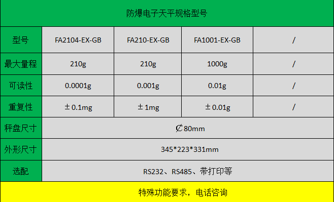 防爆電子天平簡介:防爆電子天平,是專為具有爆炸和爆燃危險的產品生產場所開發研制的微電腦控制電子精密稱量設備,其防爆標志為dⅡBT4,可在兵器行業火、炸藥和火工品制造裝配、彈體裝藥、裝配檢測稱量,航空航天彈箭飛行器具研制以及民用爆破器材生產中得到廣泛應用。